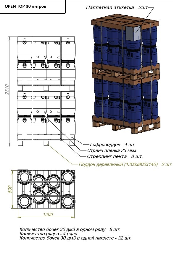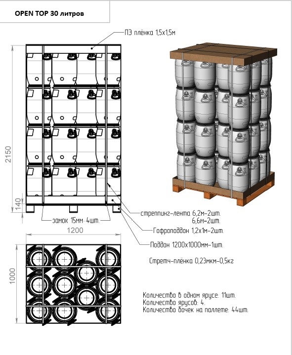 Крышка, укомплектованная полиуретановым уплотнителем, герметично укупоривает бочку и надежно защищает фасованный продукт.