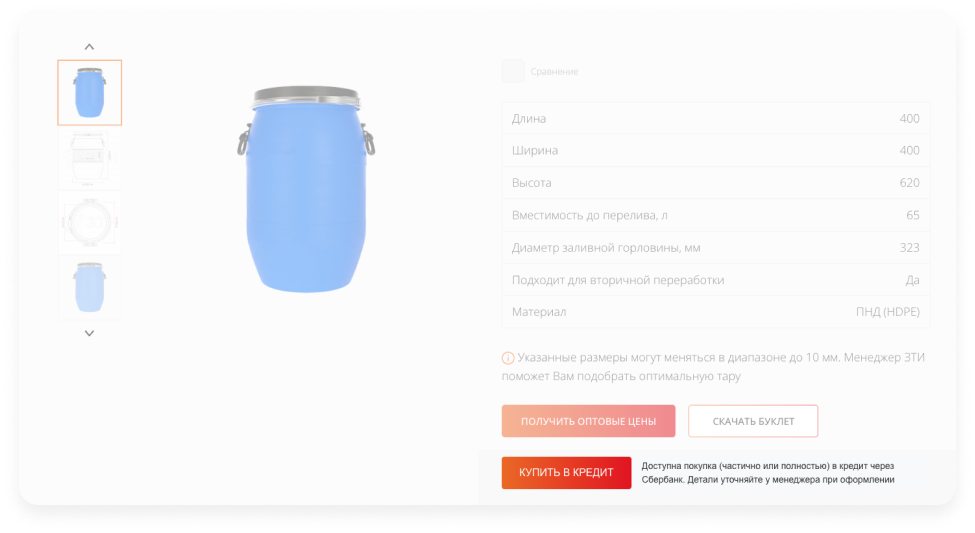 выбрать продукцию и в карточке выбрать «Купить в кредит»