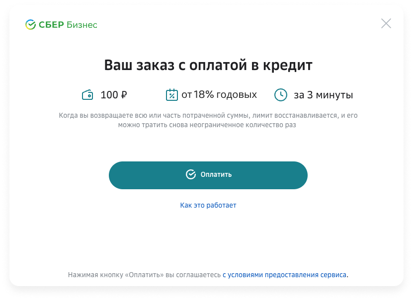Появится ссылка СБЕРа «Оплата в кредит», нажать её