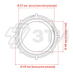 - Диаметр внешней резьбы: 69мм (шаг 5,5мм)