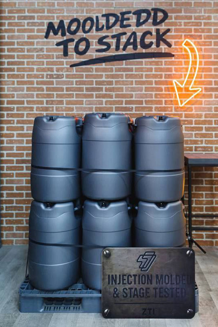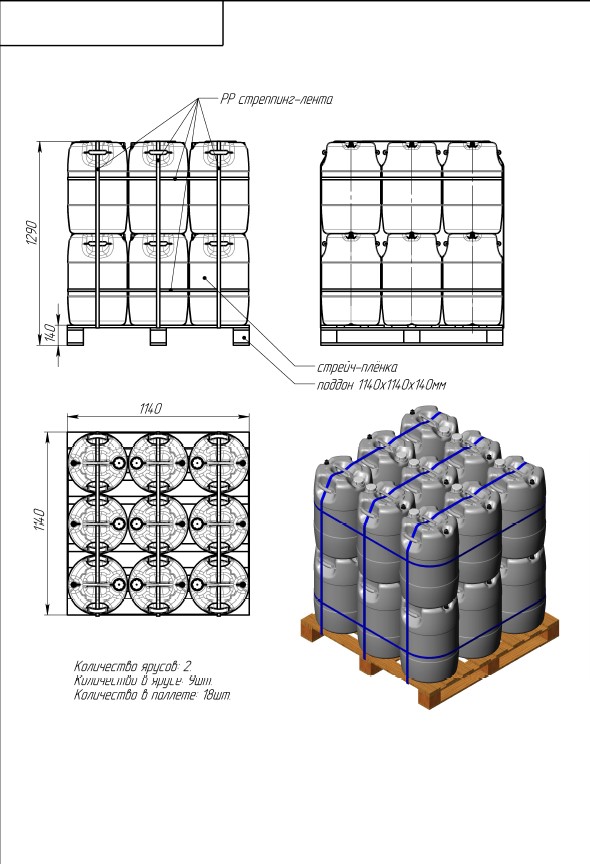- Штабелирование без прокладок. Устойчивая форма позволяет надёжно размещать канистры в штабеле, экономя место и снижая риски боя тары.